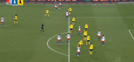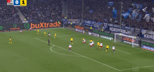 第90+7分鐘,柯尼希斯多費(fèi)爾最后時(shí)刻頭球破門,漢堡1-1多特