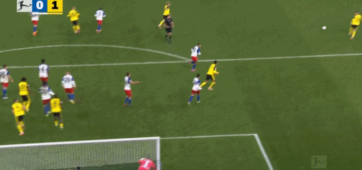 第64分鐘,施洛特貝克倒鉤助攻,丘庫(kù)埃梅卡破門,多特1-0漢堡