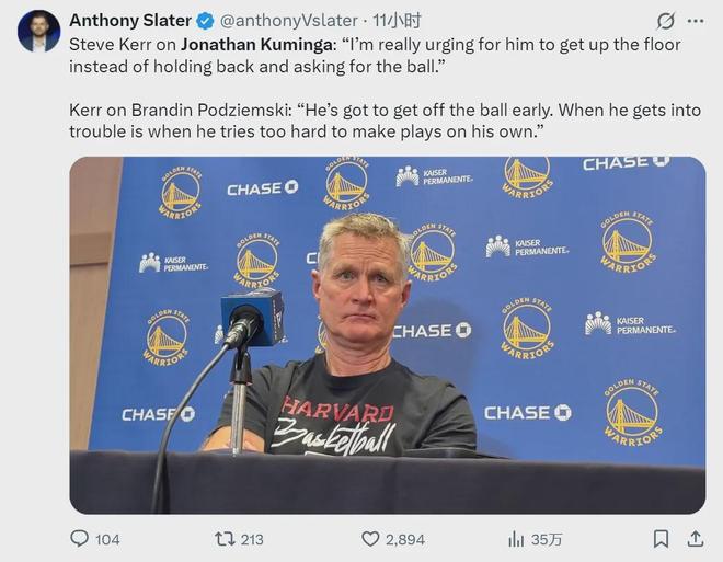 這一下估計(jì)是又產(chǎn)生了新的矛盾,主要是在庫明加跟勇士主帥科爾之間的矛盾。